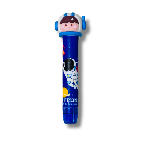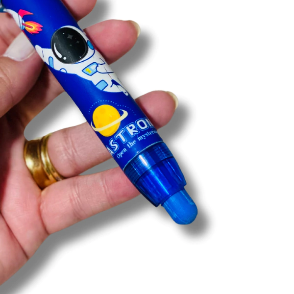 Borracha Retrátil Astronauta será a parceira perfeita para dar um toque especial aos seus estudos, trabalhos e tarefas do dia a dia. Com um design encantador, essa borracha proporciona delicadeza e estilo na hora de apagar. Em formato de caneta é super prática para segurar.